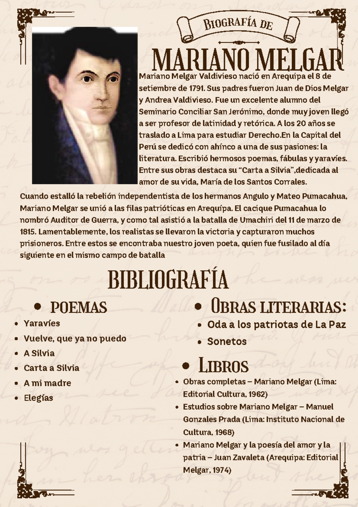 Although Melgar’s life was tragically cut short at the age of 25, his legacy lives on through his poems. His works often touch on themes of love, freedom, and national identity, making him a beloved figure in Peruvian literature.
