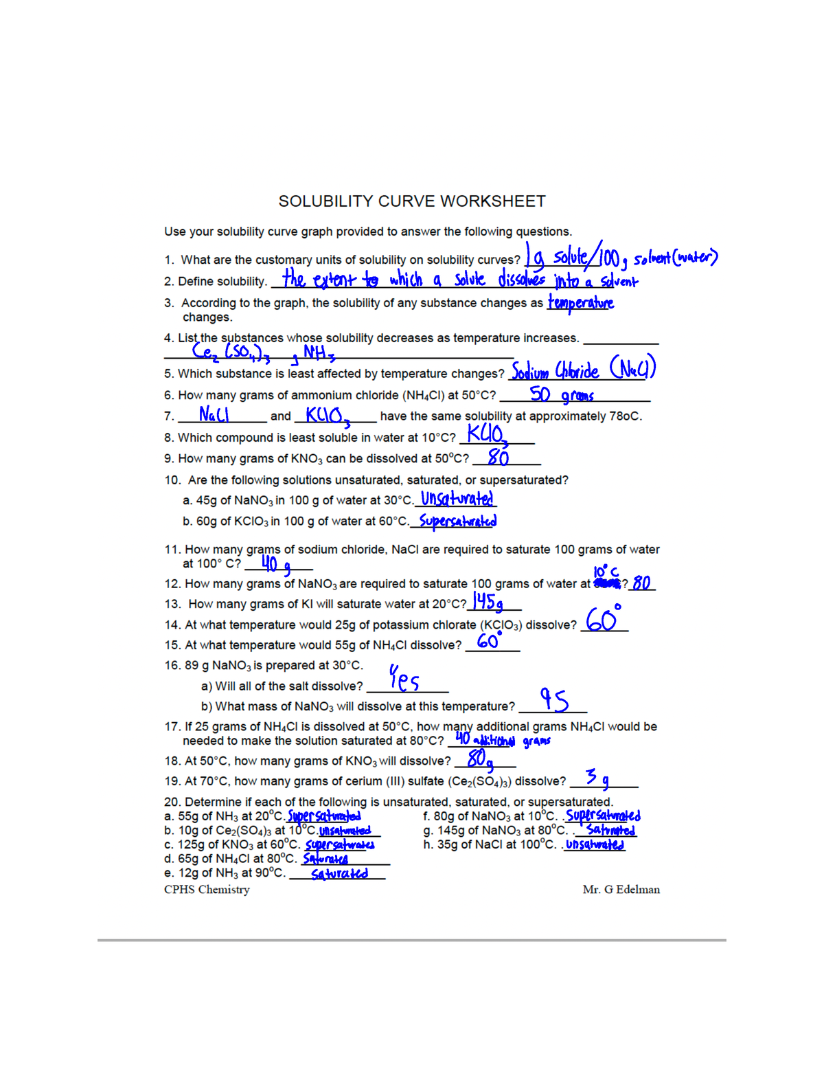 Unit 12 Solutions Solubility Curves Worksheet Fill Online Worksheets Library